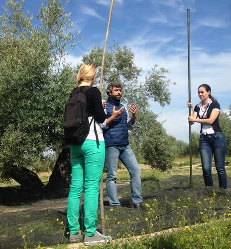 La aventura empezará en pleno campo. Nos desplazaremos en nuestros coches privados hasta un olivar cercano en el que podremos sentirnos como verdaderos aceituneros. Armados con los utensilios tradicionales aprenderemos cómo se "visten" los olivos y cuál es la técnica perfecta para "varear" en una recogida simbólica de aceituna. Será la ocasión perfecta para introducirnos de lleno en el mundo del AOVE y conocer más sobre la historia de la zona.