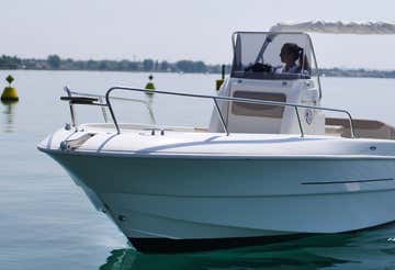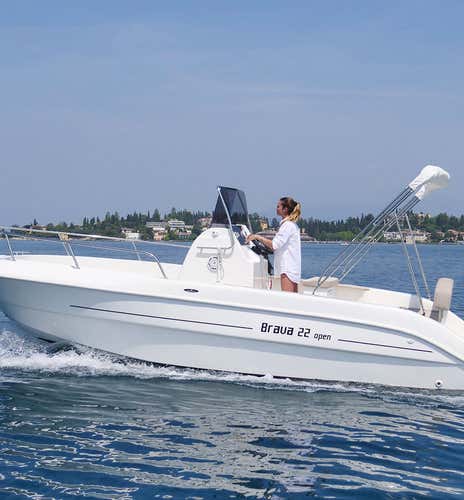 Navegarás en el Mingolla Brava 22 o el Allegra 21 Open, dos barcos de 6 metros de eslora y 115 cv. Ambos tienen capacidad para 8 personas y están equipados con toldo, ducha, escalera y plataforma para baño, nevera, mesa, altavoz y máscara de snorkel.