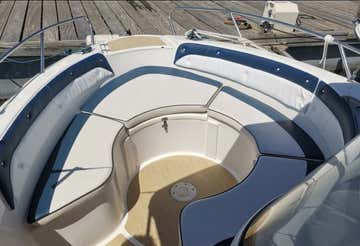 El barco es el Nautilus. Se trata de un Quicksilver 600 de 6,5 metros de eslora con motor de 115 cv. Cuenta con capacidad para 5 personas + el patrón y está equipado con sistema de música a través de Bluetooth, amplio solárium en proa, mesa para comer, toldo y escalera de baño. Además, a bordo contarás con gafas de snorkel.