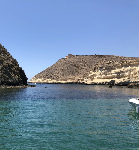 Con el motor en marcha y el patrón al timón —que además conoce la zona como la palma de su mano— zarparemos rumbo a algunas joyas de la costa almeriense. Entre las paradas más probables están Isla de los Terreros e Isla Negra, donde se puede practicar snorkel en aguas transparentes y descubrir un fondo marino de película.