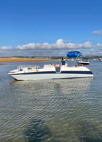 En Santander podrás alquilar un barco Bayliner Rendezvous de 8 metros, con motor de 175 CV y capacidad para 12 personas, perfecta para explorar la bahía con total libertad.