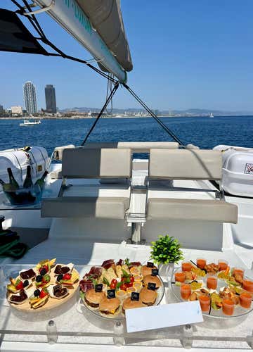 Alquiler de catamarán luxury con patrón y aperitivo en Barcelona