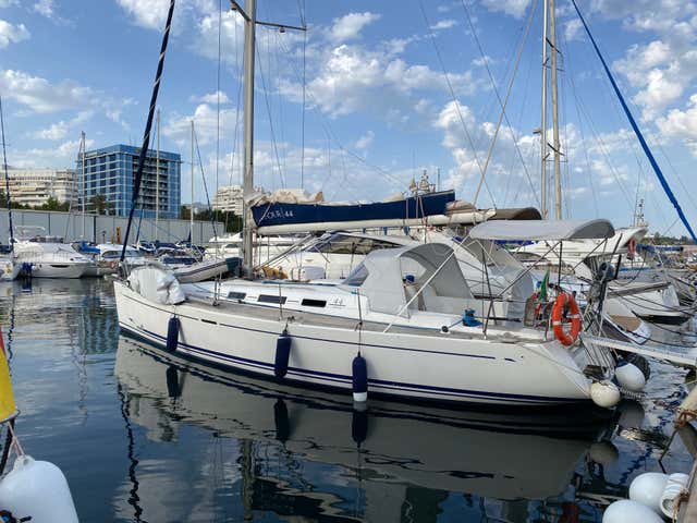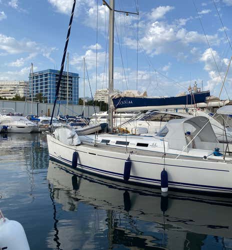 La embarcación es un velero Dufour 44 Performance, de 14 metros de eslora y motor de 65 cv. Cuenta con solárium, 3 camarotes, aseo, frigorífico, máquina de hielo, toldo, escalera de baño y tabla de SUP. Se navega a vela siempre que sea posible.