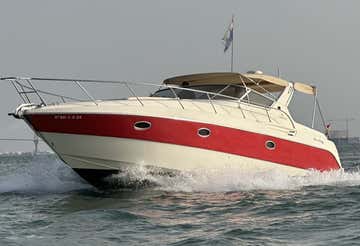 Se trata del yate Cranchi Smeraldo 36, de 11,89 metros de eslora y 3,85 metros de manga, equipado con dos motores Volvo Penta con una potencia total de 460 caballos. El yate cuenta con todas las comodidades: solárium, toldo, 2 cabinas con baño, tapicería de cuero, frigoríficos y conexión Bluetooth. ¡No olvides traer comida y bebidas para brindar con tu grupo de hasta 6 personas!