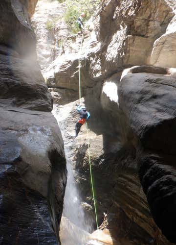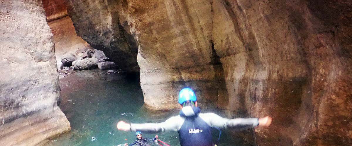 Antes de adentrarnos en el barranco, el guía realizará un breve briefing para explicar las normas de seguridad, cómo progresar por el barranco y cómo se realizarán los rápeles. ¡Y empieza la aventura! El Gorgol es un barranco corto pero muy dinámico, ideal como primera toma de contacto con el barranquismo. Saltos no obligatorios, toboganes naturales y resaltes se irán sucediendo entre paredes esculpidas por el agua hasta llegar a su plato fuerte: un espectacular rápel de 18 metros.