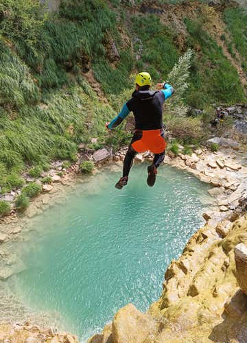 - Disfruta de dos rápeles obligatorios, un tobogán natural y saltos de hasta 10 metros