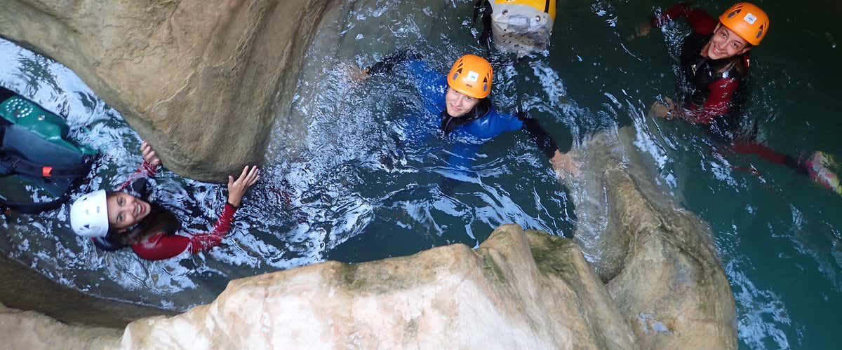 En el barranco de La Peonera en la Sierra de Guara, el nivel lo decides tú. Es uno de los descensos más dinámicos y lleno de sorpresas: saltos opcionales de hasta 10 metros, pasos flotando bajo bloques de piedra, rápidos, toboganes y pozas de aguas turquesa. Ideal para quienes buscan acción, pero también para quienes solo quieren dejarse llevar por la corriente.