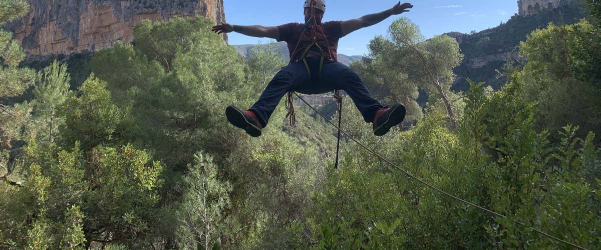 - Disfruta de destrepes sencillos y tres rápeles volados con vistas al cañón del Turia