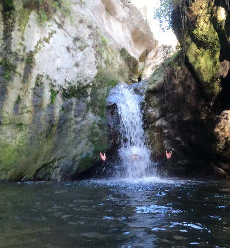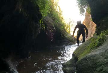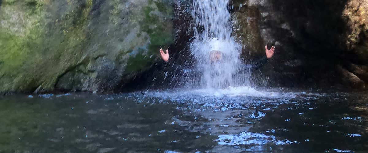 Cuando estemos listos, subiremos a la furgoneta y comenzaremos nuestro recorrido hasta el punto de inicio del barranco. Desde allí, nos espera una caminata corta de unos 5 minutos hasta la entrada del desfiladero, donde el guía nos dará una explicación de seguridad y realizaremos un pequeño salto de prueba para soltarnos antes de comenzar la aventura.