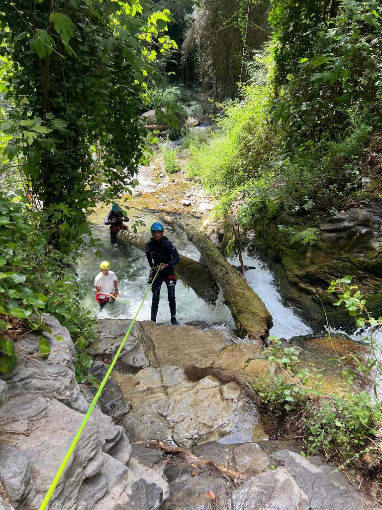 ¡Llega momento de adentrarnos en la aventura! Será una experiencia acuática de principio a fin, con 4 rápeles obligatorios de hasta 12 metros (pero accesibles), tramos de toboganes naturales, cascadas y pozas donde zambullirse. Descubriremos un entorno espectacular del valle del Genal, en la Serranía de Ronda, entre castaños y paredes esculpidas por el agua. El cañón se desarrolla de forma encajonada y con un desnivel total de unos 50 metros, lo que le da un punto de emoción sin resultar técnico ni excesivamente exigente.