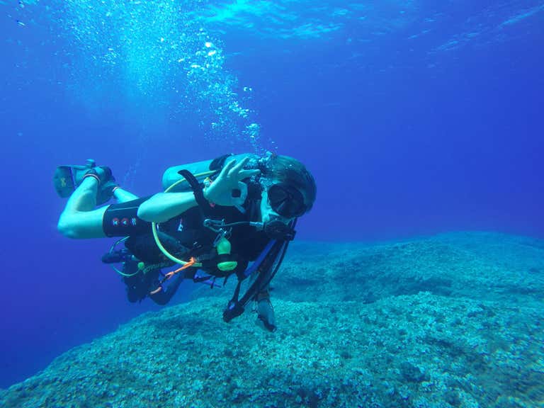 Después, nos equiparemos con traje, gafas, aletas, botella y regulador… ¡todo incluido! Luego subiremos a una semirrígida de 8,50 metros que nos llevará cómodamente hasta el punto de inmersión. Desde allí, entraremos al agua, sin prisas, a nuestro propio ritmo. Nos sumergiremos suavemente hasta una profundidad máxima de 5 metros, perfecta para empezar y disfrutar sin presión.