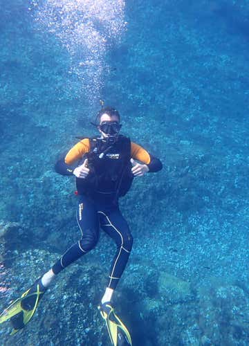 A continuación, pasaremos a la colocación del equipo: se te proporcionará todo lo necesario, desde el traje de neopreno hasta el regulador. Una vez listos, caminaremos hasta la barca amarrada a pocos metros del centro, sin necesidad de traslados en coche o furgoneta.