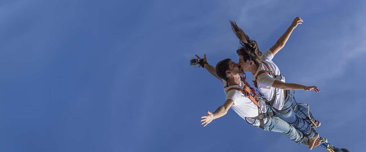 Una vez listos, esperaréis vuestro turno... y entonces llegará el gran momento: ¡3, 2, 1... salto! Os lanzaréis juntos desde 70 metros de altura, durante unos 20 segundos de pura adrenalina, apoyándoos mutuamente en una experiencia que jamás olvidaréis.