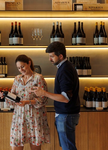 Durante el recorrido, visitaremos la zona de elaboración y la sala de barricas, donde descubriremos qué hace especiales a estas dos casas: desde la curiosidad de que Nivarius solo elabora vinos blancos, hasta el esfuerzo de Proelio por rescatar viñedos antiguos para crear sus tintos. Veremos de cerca cómo cuidan cada trozo de tierra para que la uva crezca con un sabor único. Tras conocer los rincones donde el vino descansa, desharemos el camino entre cepas para regresar al acogedor Wine Bar.