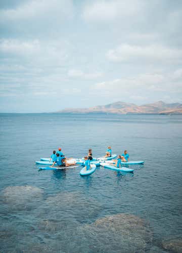 Una vez listas las tablas (y nosotros), nos moveremos al agua para una sesión de 45 minutos de Yoga SUP.
