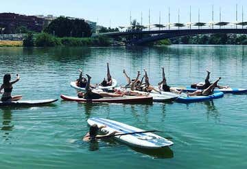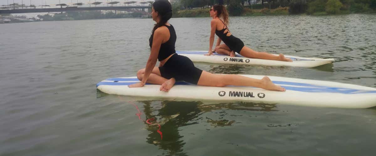 Participa en una clase de SUP Yoga en Sevilla, en el hermoso escenario del canal Alfonso XIII.