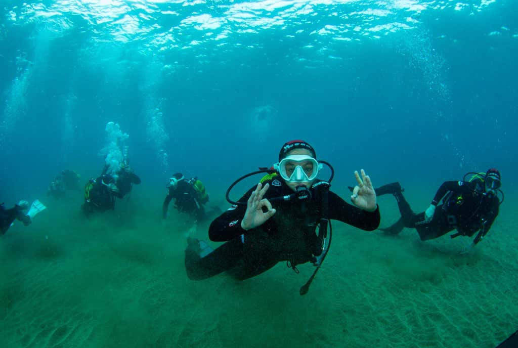 Comenzaremos con una clase teórica en tierra de unos 30 minutos, en la que aprenderemos los principios básicos de la respiración bajo el agua, el uso del equipo, las señales manuales utilizadas para comunicarse durante la inmersión y las precauciones de seguridad fundamentales.
