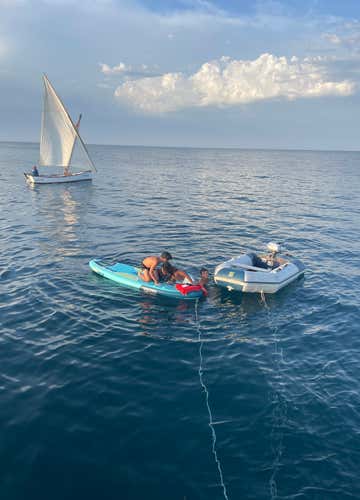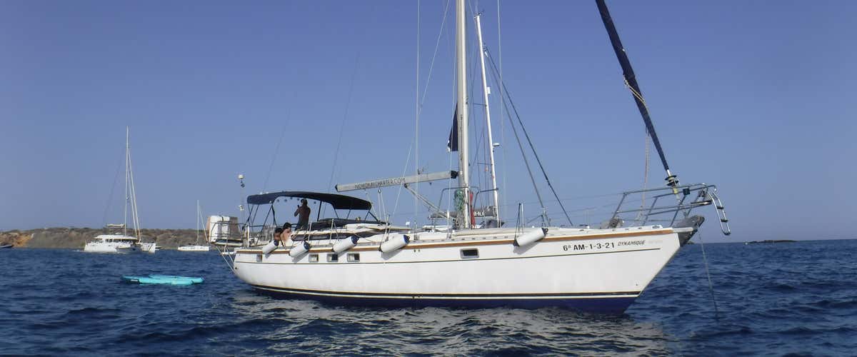 La embarcación es un velero Dinamic de 15 metros, con motor de 80 CV, amplia cubierta, solárium, escalera de ascenso, ducha de agua dulce, WC y cabina. A bordo se está descalzo. Se admiten comidas y bebidas. Se admiten perros de hasta 5 kg.