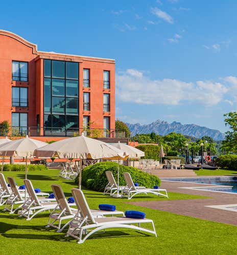 Vuestra escapada comienza en Capellades, Barcelona, entre los viñedos del Alt Penedès y las montañas de Montserrat. Os alojaréis por 1 noche en un elegante hotel resort de estilo modernista, rodeado de naturaleza y con unas vistas espectaculares a la montaña. El check-in se realiza a partir de las 15:00.