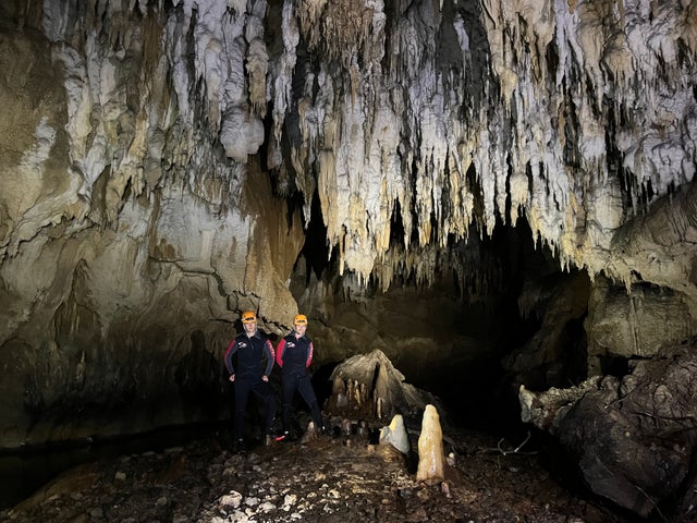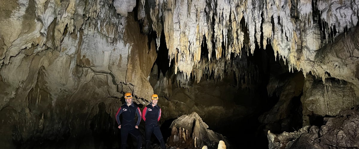 Será el momento de adentrarnos en las entrañas de la tierra con una emocionante aventura de espeleobarranquismo. Exploraremos las enormes galerías de la cueva, caminando entre impresionantes columnas y coladas de varios metros de altura. Disfrutaremos del entorno único de este valle kárstico y avanzaremos por el cauce del río que se adentra en la montaña.