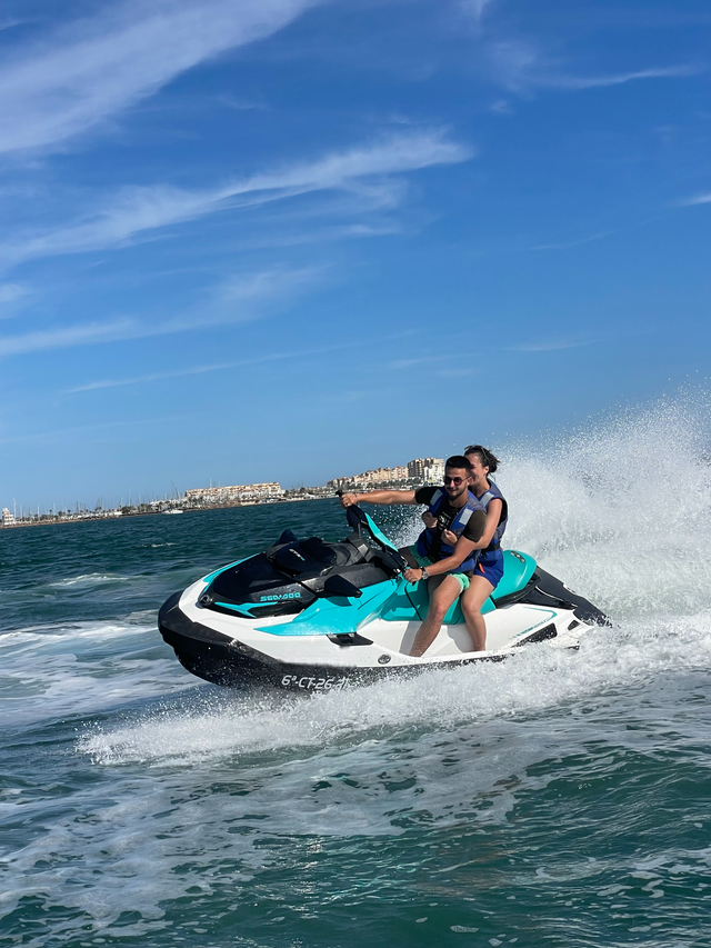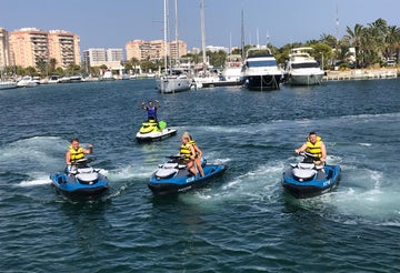 Súbete a una moto de agua en La Manga del Mar Menor para disfrutar de 30 minutos de pura adrenalina. Gracias a una ubicación estratégica, podrás navegar por las tranquilas aguas del Mar Menor o salir a surcar el Mediterráneo en una emocionante ruta guiada.