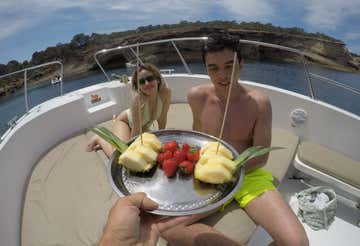 Cóctel de bienvenida, fruta fresca y un reportaje fotográfico para inmortalizar cada instante. Ibiza desde el mar, como nunca la habías vivido.