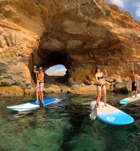 Mientras navegamos, recibiremos un curso básico de paddle surf. No importa si es tu primera vez, el instructor se encargará de explicarte todo para que puedas disfrutar al máximo cuando lleguemos a nuestro destino. Una vez allí, nos lanzaremos al agua para remar sobre la tabla durante una hora completa, explorando cuevas y calas.