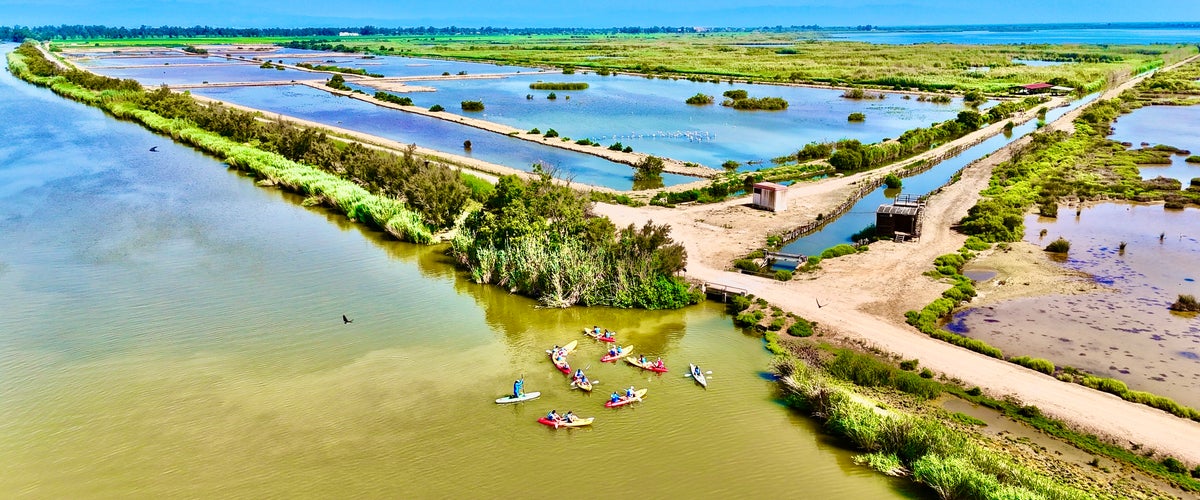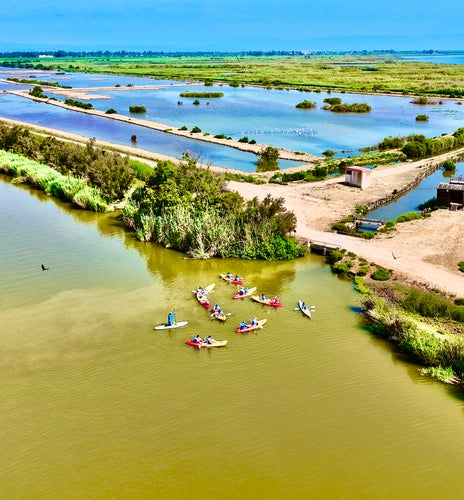 El guía habrá seleccionado con atención la ruta, según el viento y las corrientes del día, para garantizar nuestra seguridad y máximo disfrute. Podremos explorar desde la desembocadura del río y sus lagunas hasta los canales tranquilos que serpentean entre arrozales, o incluso acercarnos a los santuarios de fauna de las islas de Buda y de Sant Antoni.