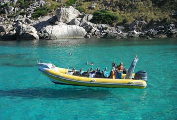 La cita es 15 minutos antes de la hora indicada en el punto de encuentro en Port de Pollença, Mallorca. Nos recibirá nuestro patrón, quien nos dará una breve charla inicial de unos 5 minutos antes de zarpar a bordo de nuestra lancha rápida.
