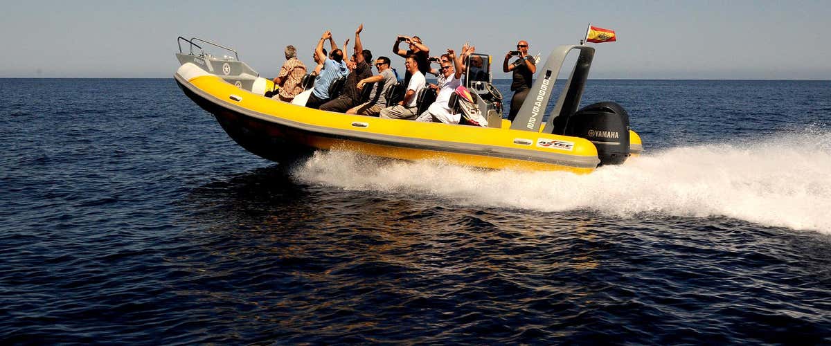 La embarcación utilizada es una lancha neumática de 7,5 metros con motor de 350 CV, diseñada para ofrecer velocidad y diversión.