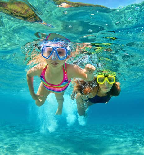 - Explora una cueva marina y nada entre bancos de peces