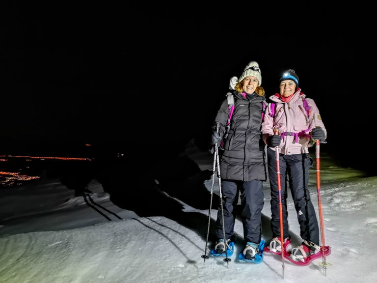 Sigue el rastro de la luz plateada por senderos nevados en esta excursión nocturna con raquetas de nieve. Acompañado por un guía de montaña que te conducirá entre montañas y valles dormidos. Solo tú, la luna y el sonido de tus pasos sobre el manto blanco.