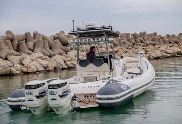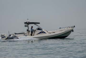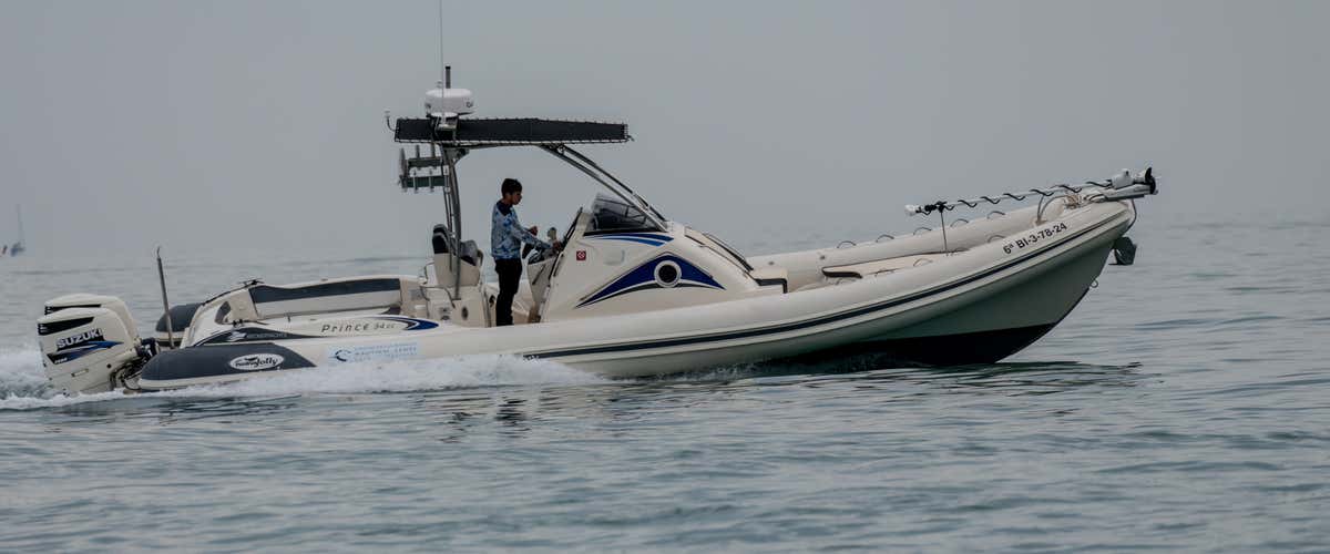 Navegarás a bordo de una lancha semirrígida Prince 34 de 10 metros de eslora y 600 cv. La embarcación tiene capacidad para 12 personas y cuenta con cómodos asientos, solárium, baño, camarote, equipo de sonido, cocina, agua, ducha, iluminación led interior y exterior, plataforma y escalera de baño, toldo trasero y delantero, entre otros accesorios.