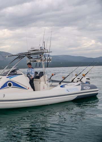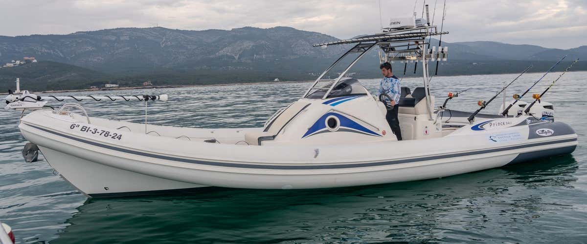 Navegarás a bordo de una lancha semirrígida Prince 34 de 10 metros de eslora y 600 cv. La embarcación tiene capacidad para 12 personas y cuenta con cómodos asientos, solárium, baño, camarote, equipo de sonido, cocina, agua, ducha, iluminación led interior y exterior, plataforma y escalera de baño, toldo trasero y delantero, entre otros accesorios.