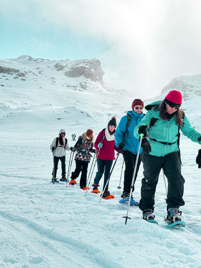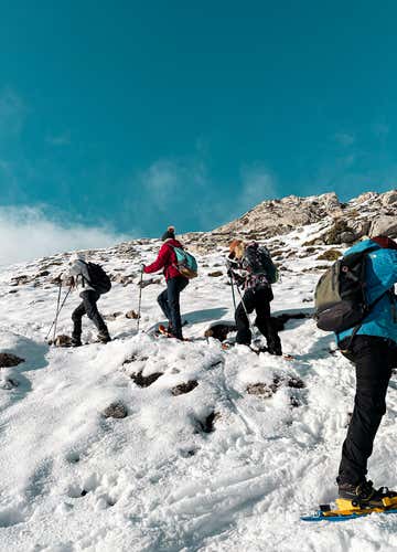 Un manto blanco y el crujir de la nieve bajo las raquetas como único sonido en el silencio de la montaña.