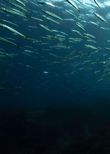 Durante la inmersión, podremos encontrarnos cara a cara con bancos de espetones, meros, abadejos, peces limón y, con algo de suerte, también rayas.