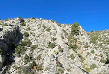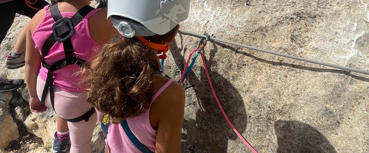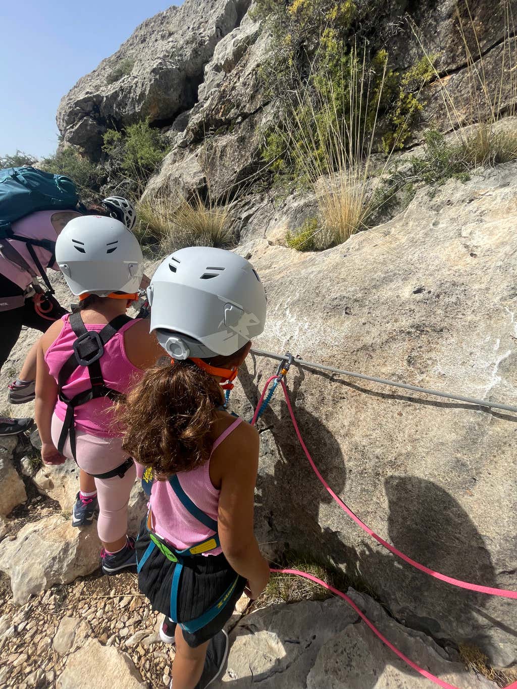Después, una caminata de 10 minutos nos llevará hasta el inicio de la vía ferrata, que nos conducirá a lo alto para después descender el barranco.