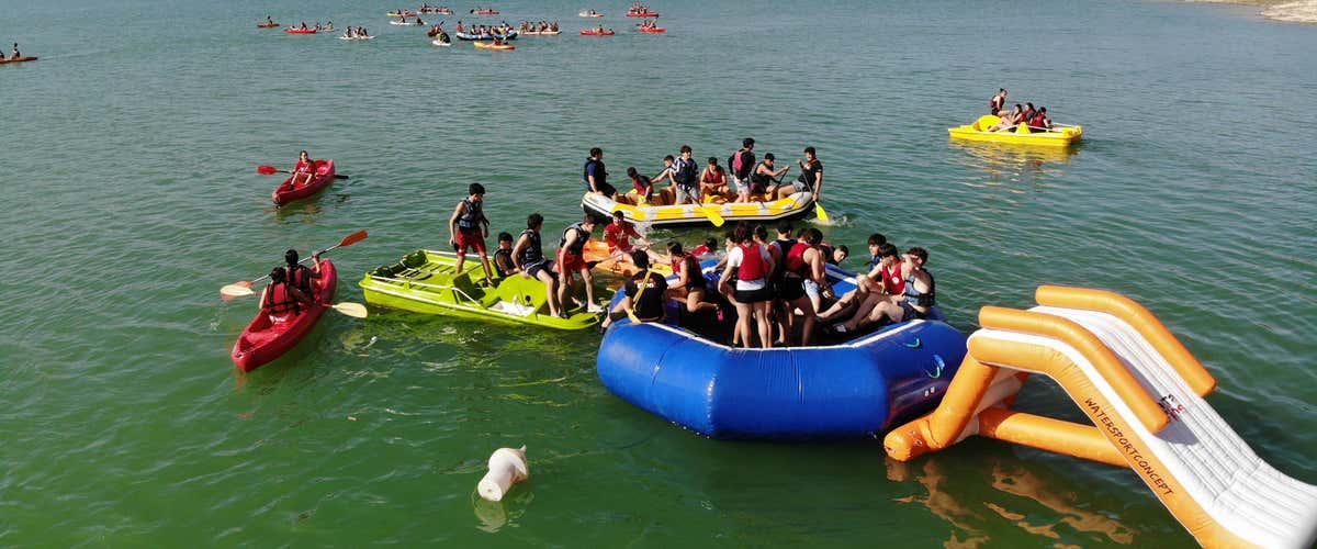 Serán 4 horas de juegos, agua y adrenalina con piraguas, paddle surf, big SUP, hidropedales, tobogán hinchable y hasta cama elástica.