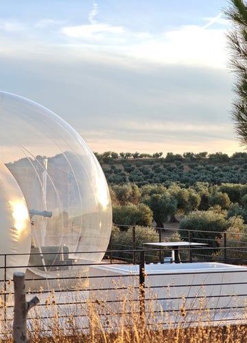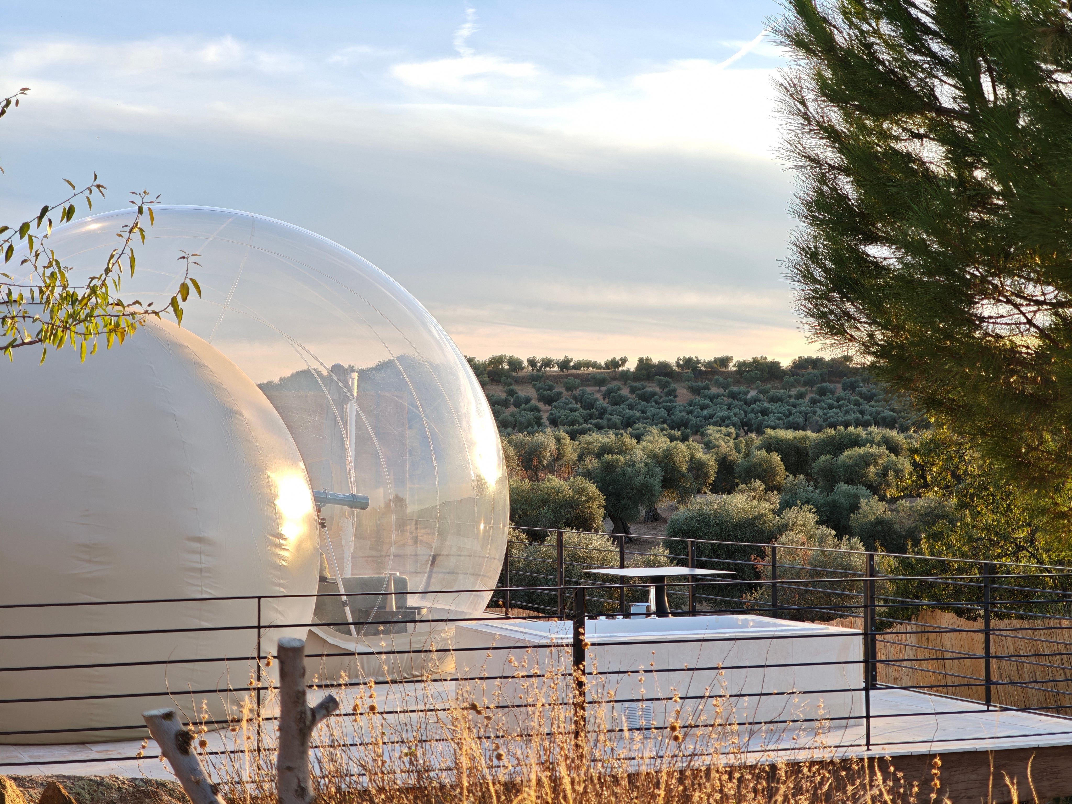 Disfrutad de 1 noche de desconexión absoluta en una suite burbuja para 2 personas, con hidromasaje privado en Guadamur, a solo 15 minutos de Toledo y poco más de una hora de Madrid. Un refugio de paz diseñado para contemplar el espectáculo astronómico desde la comodidad de vuestra cama y reconectar con la calma de los olivos centenarios.