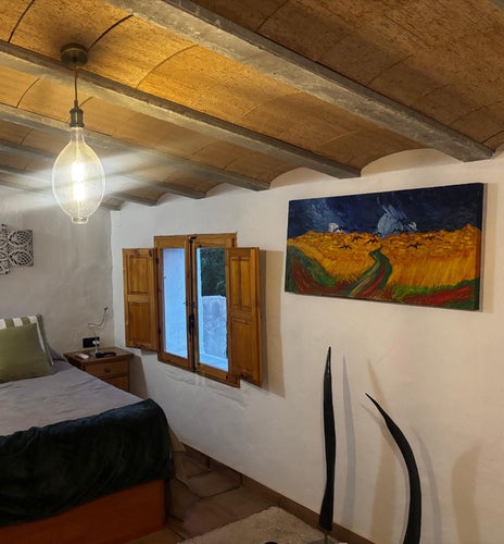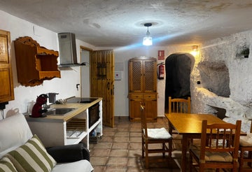 Os alojaréis en una casa cueva amplia y luminosa, excavada en la roca y equipada con todas las comodidades modernas. Dispone de dos habitaciones con cama king size y baño privado, una de las casas dispone de una bañera de piedra, además de un salón-comedor acogedor y una cocina totalmente equipada con horno, microondas, nevera y menaje para que podáis cocinar a vuestro ritmo.