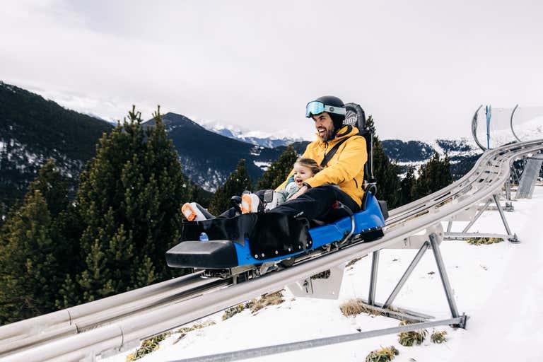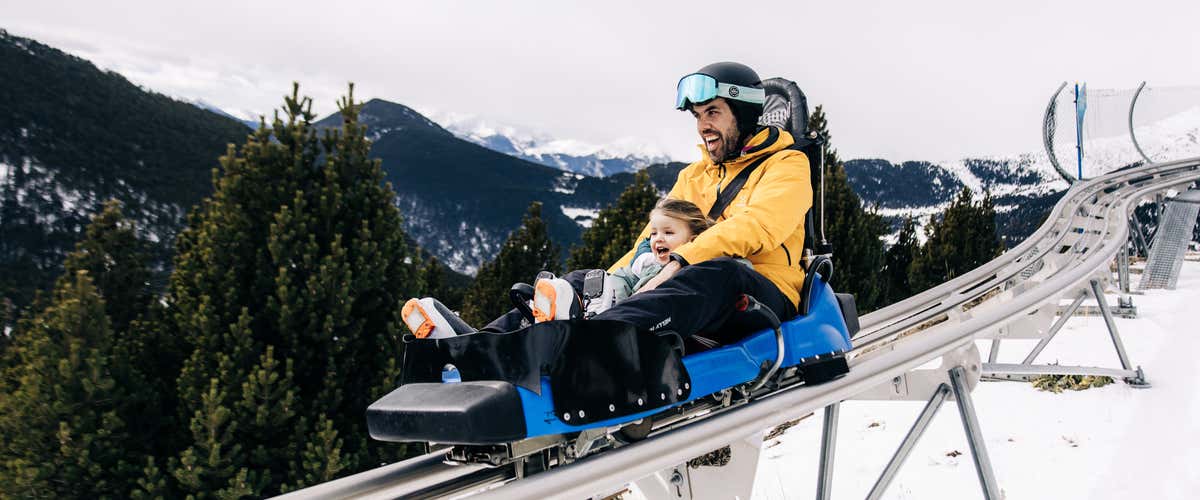 Vuela sobre las pistas nevadas con la tirolina, diviértete descendiendo hasta 3 veces en la montaña rusa alpina (una de ellas con realidad virtual) y ponte a prueba con 1 hora de patinaje sobre hielo. El paquete perfecto para quien sabe que en Andorra no solo se esquía.