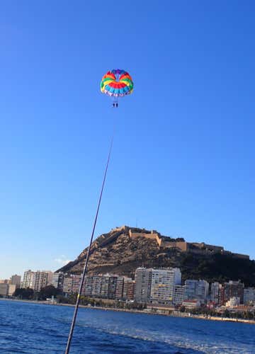 Podremos volar en solitario, pareja, trío... o hasta cuatro a la vez si lo que buscamos es una experiencia en familia con los más pequeños. Eso sí, todo dependerá de las condiciones del viento y la última palabra la tendrá el patrón. Cuando llegue nuestro momento, equipados con el arnés y enganchados al paracaídas, alzaremos el vuelo. Remolcados por la lancha podremos admirar la costa de Alicante desde las alturas.