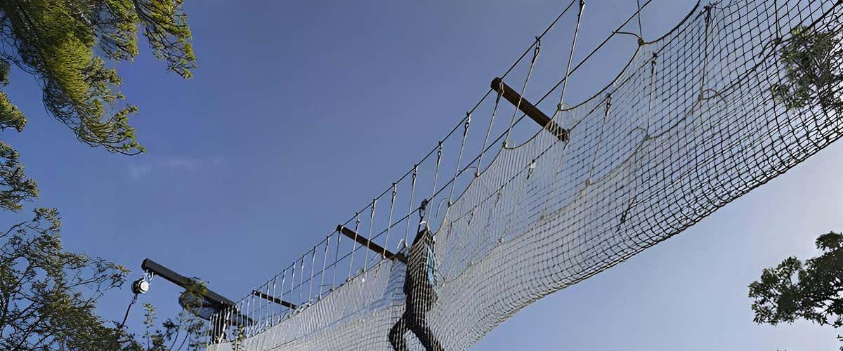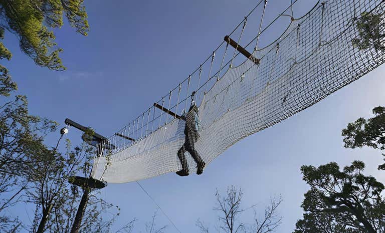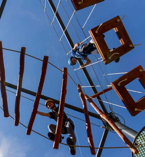 - Enfréntate a retos como el salto al vacío, el circuito de cuerdas y la gran tirolina de 110 metros