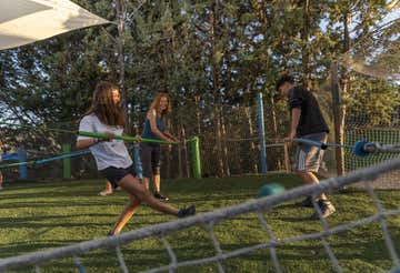 - Actividades libres: torre boulder de escalada, minigolf, circuito de equilibrio, futbolín humano, billar gigante, salto al vacío hinchable y tobogán, gincana de orientación.