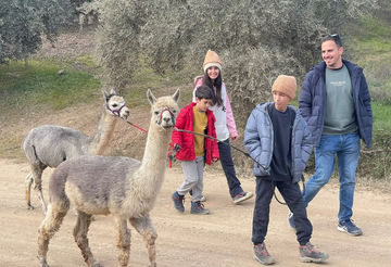 Paseo con alpacas entre olivos y almuerzo en granja en Montoro