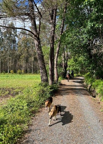 La ruta es circular y nos llevará por los recónditos parajes que rodean la zona. Disfrutaremos de un paisaje dominado por eucaliptos, carballos (robles) y campos llenos de vida, alejados de cualquier ruido urbano. Si tenemos experiencia previa, los monitores podrán adaptar el ritmo para trotar o galopar bajo su criterio; si es nuestra primera vez, nos dejaremos llevar por la docilidad de los animales mientras atravesamos bosques y senderos mágicos.