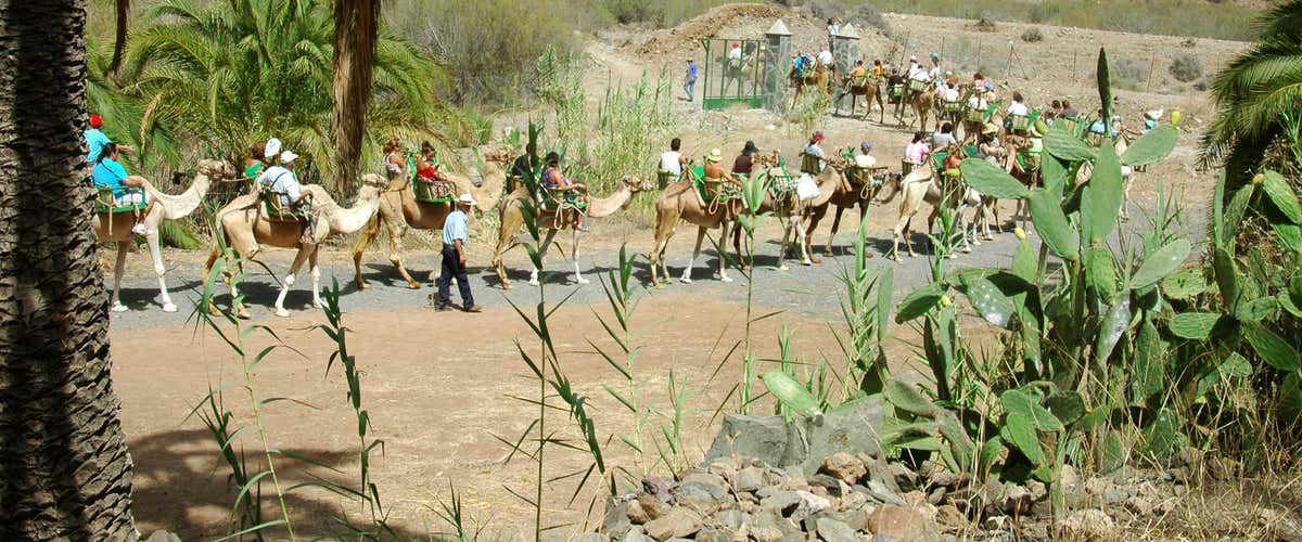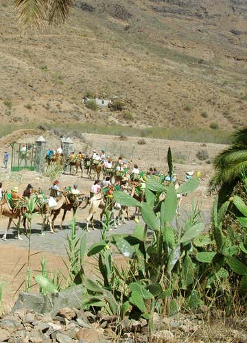 Comenzará entonces nuestro paseo en camello, avanzando en caravana a través del impresionante palmeral de más de 300 años de antigüedad, dentro de la Reserva Natural de Fataga, un enclave de enorme valor paisajístico y etnohistórico que nos hará sentir como en un auténtico escenario oriental.