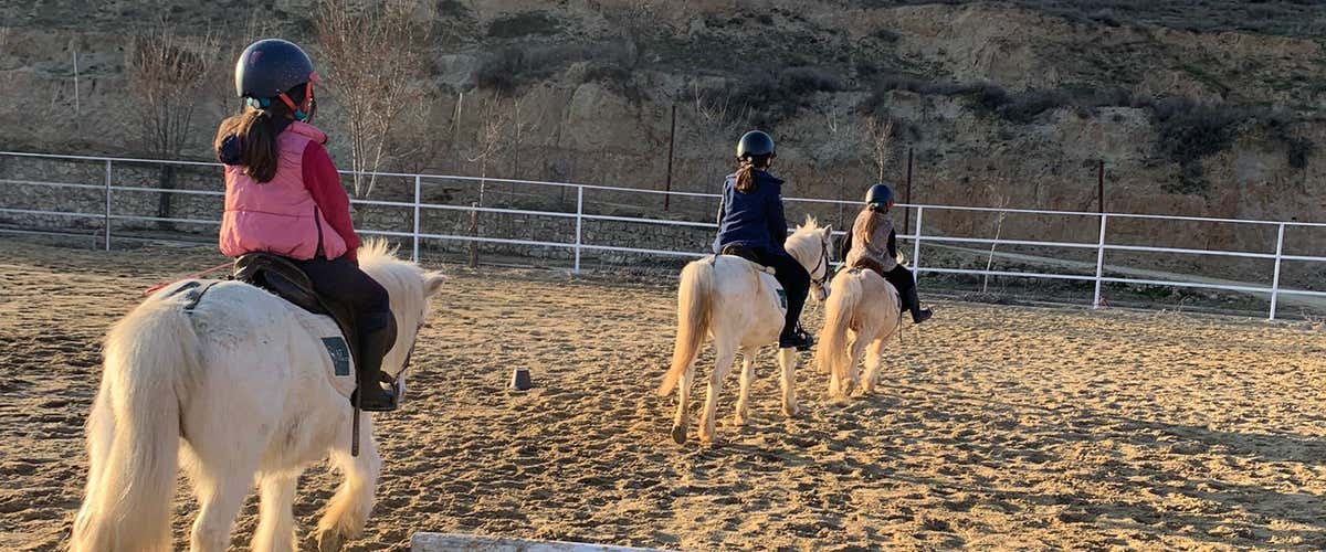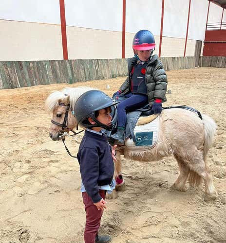 Una vez listos, llegará el momento de montar. Durante unos 40 minutos, los niños darán un paseo en poni tanto por la pista como por la zona de campo dentro del recinto de la hípica. Toda la experiencia se hará en grupo reducido, con un máximo de 6 niños, siempre acompañados a pie por el monitor, que estará atento en todo momento para que se sientan seguros y lo pasen en grande.