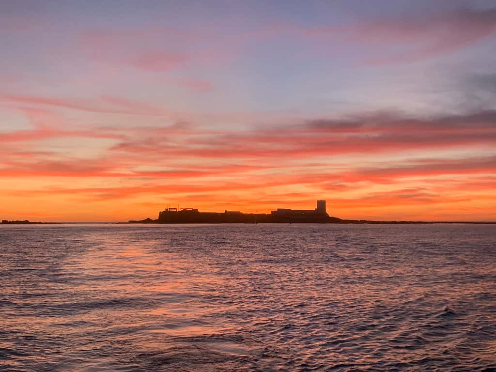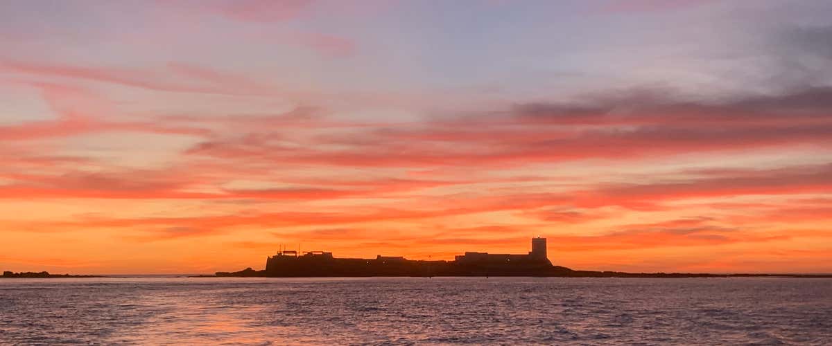 Fondearemos frente al castillo de Sancti Petri, una fortaleza histórica situada en una pequeña isla. Con este escenario único ante nosotros, esperaremos la puesta de sol. Cuando el cielo comience a teñirse de tonos cálidos, brindaremos con una copa de vino espumoso para celebrar el momento antes de regresar a puerto.