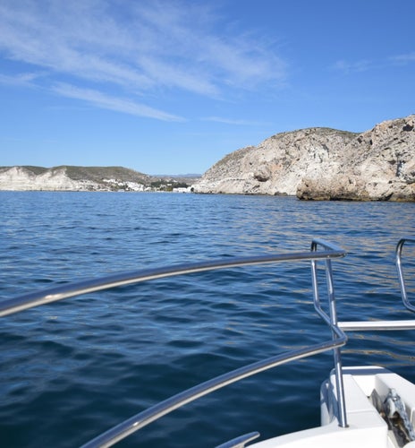 La cita será en el Puerto de Carboneras en Almería, unos 15 minutos antes del horario de la reserva. Allí os recibirán los miembros de la tripulación y os acomodaréis en el yate privado para comenzar vuestra aventura exclusiva. Una vez soltemos amarras, dejaréis atrás el bullicio del puerto para bordear la costa del Parque Natural Cabo de Gata, sintiendo cómo la brisa y el sonido del casco cortando el agua marcan el inicio de la jornada.